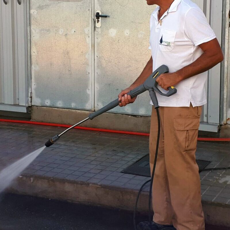 Limpieza de terrazas, de pasajes y terrazas comunitarias con agua a presión, retirando así suciedad incrustada como chicles, restos de pintura…