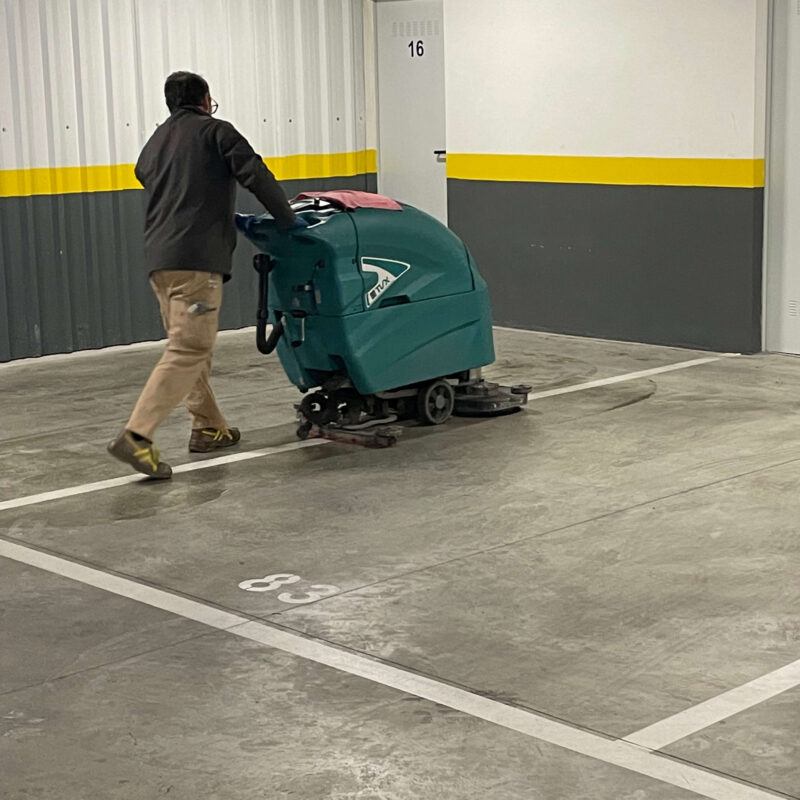 Limpieza de naves industriales y grandes superficies de forma automatizada, estudiando los productos a aplicar dependiendo de la superficie a tratar.